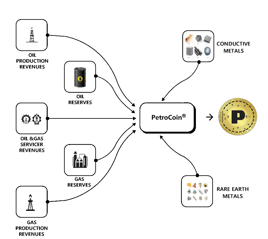 PetroCoin® tokens are backed by a diversified basket of oil and gas assets, including physical oil and natural gas proven reserves and interests in oil and gas producing fields and process stream revenues and energy processes and conductive and rare earth metals.